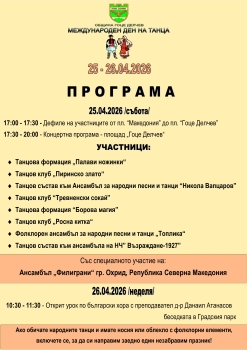 Общинска администрация гр. Гоце Делчев уведомява населението, че в периода 15.04.2026 г. – 30.04.2026 г. ще се извърши дезакаризация на зелените площи на територията на община Гоце Делчев по следния г... [Пълен техт]